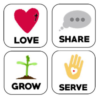 God calls all people to be God's children, that they may receive God's grace, mercy and presence. To live in that grace, we are all, also called to be disciples of Jesus Christ. The word disciple means student, we follow our teacher, Jesus, and learn from him, striving to be like Jesus. In order to accomplish this, we need a plan, a map to follow, a pathway, Love, Grow, Share and Serve. This pathway is progressive but not linear, we do not simply follow one part. As we grow we discover a need to go back, to deepen our understanding and allow the Holy Spirit to continue to work within us.